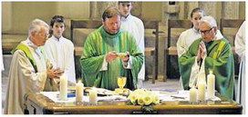 Pfarrer Jaroslaw Jan Jakus (Mitte) mit Konzelebrant Peter Rutz und Weihbischof Paul Vollmar.